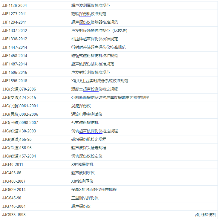 無損檢測儀器、設備和器材相關計量檢定規程和校準規范目錄大全